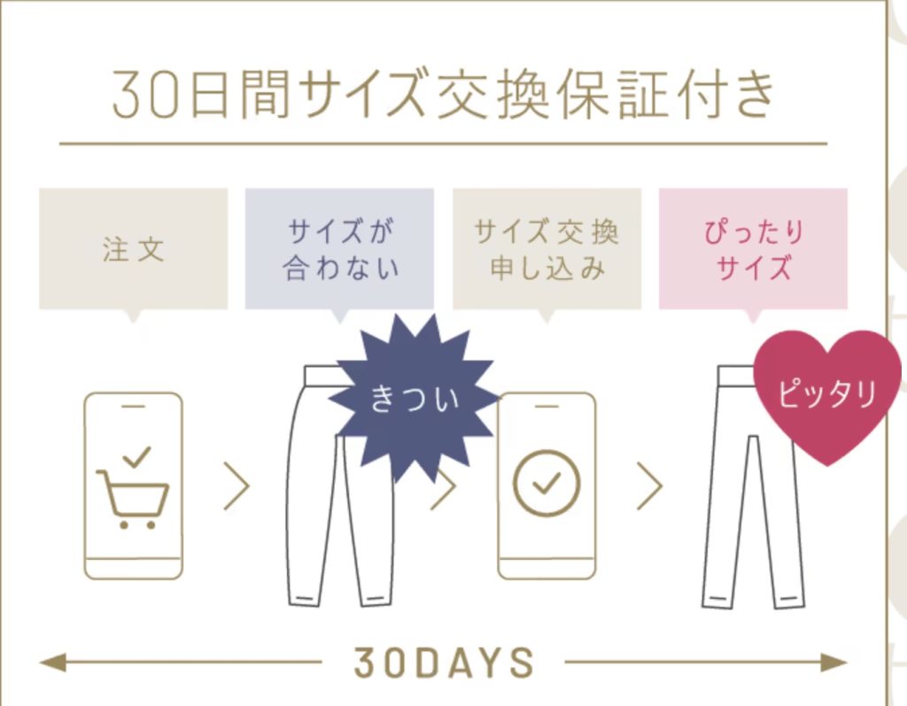 公式サイトでセット購入した場合、サイズ交換保証が利用できますが、いくつか条件があります。