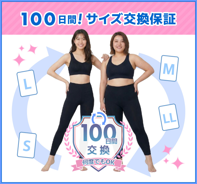 「サイズが合わなかったらどうしよう」という不安には、100日間のサイズ交換保証で。