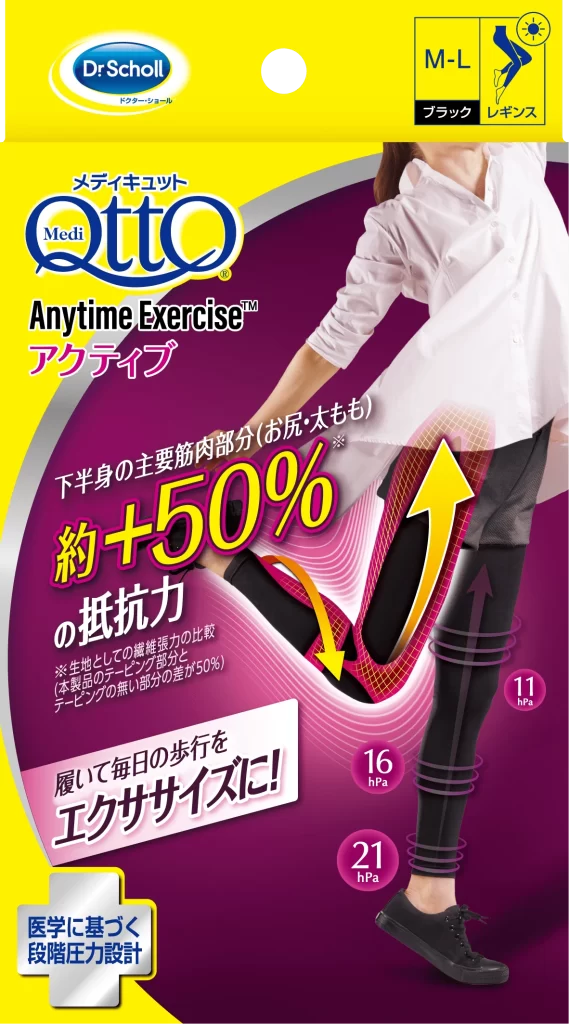 メディキュット エニタイムエクササイズは、毎日の歩行をエクササイズに変えるという発想の着圧レギンスです。
