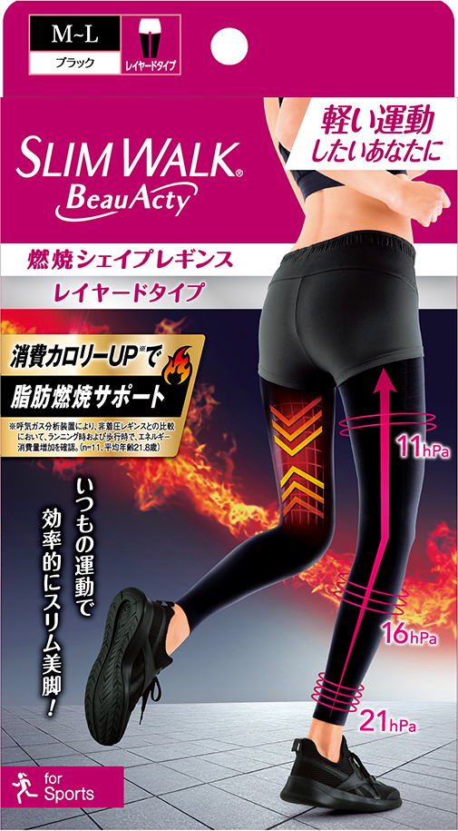 スリムウォーク Beau-Acty 美脚&美尻レギンスは、医学から生まれた段階圧力設計を採用したスポーツ向け着圧レギンスです。